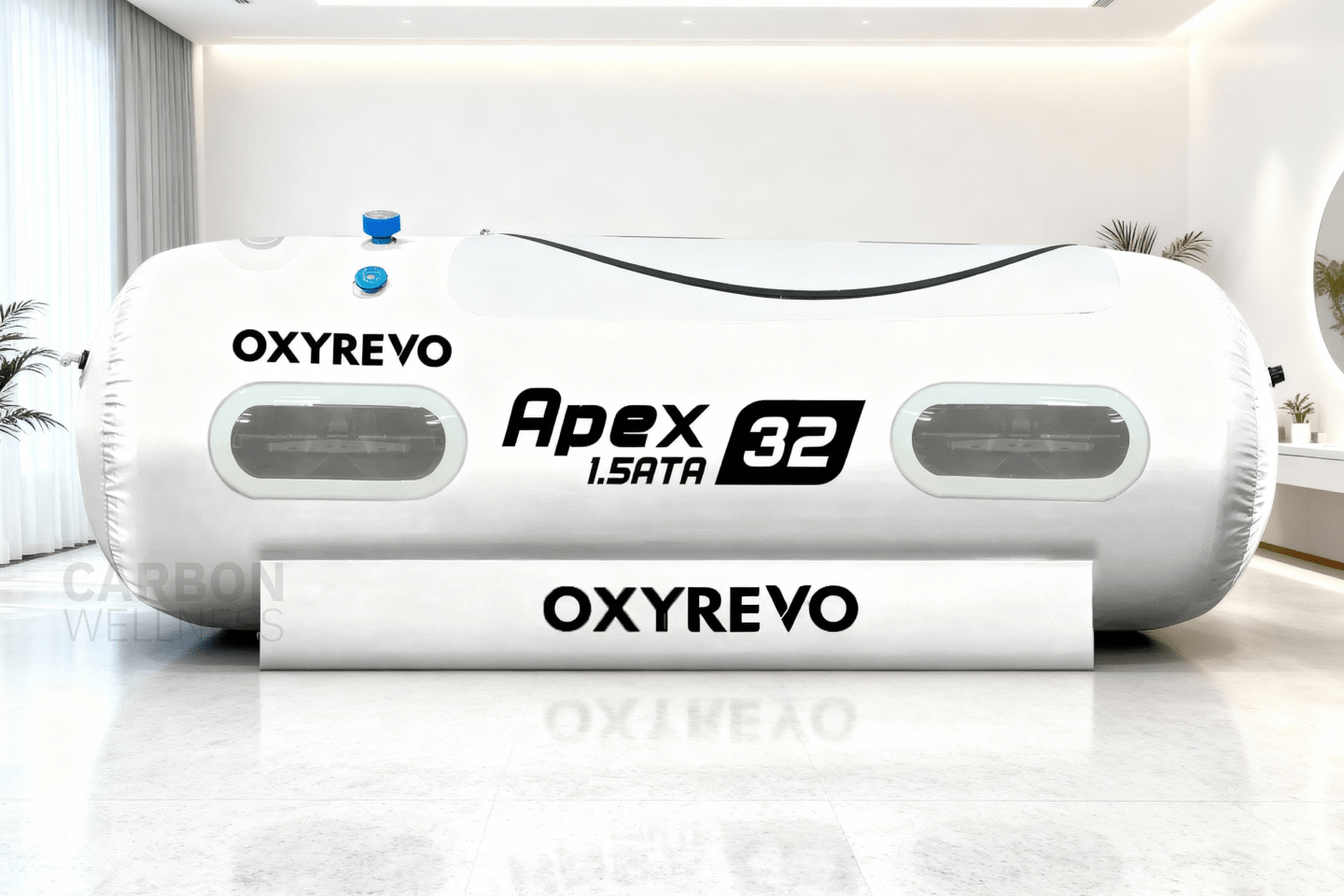 Enjoy superior home oxygen therapy with the industry's leading professional-grade hyperbaric chamber system. The OXYREVO Apex32 Portable Hyperbaric Chamber is a premium oxygen therapy system designed for home use. This model offers mild hyperbaric therapy at a higher working pressure of 1.5 ATA. It includes a 10L oxygen concentrator, dual air filters, and a memory foam mattress.