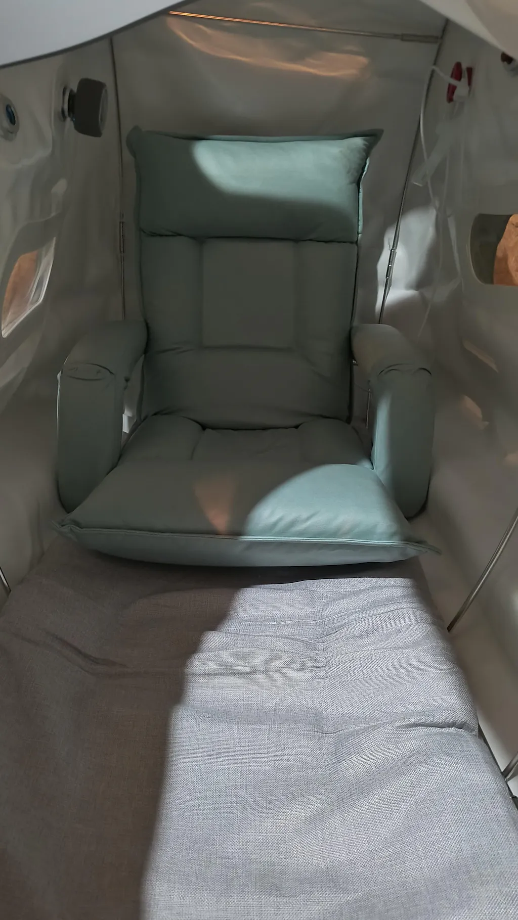 It’s a very spacious chamber for one person, although you may be able to fit two people inside if you remove the reclining chair.